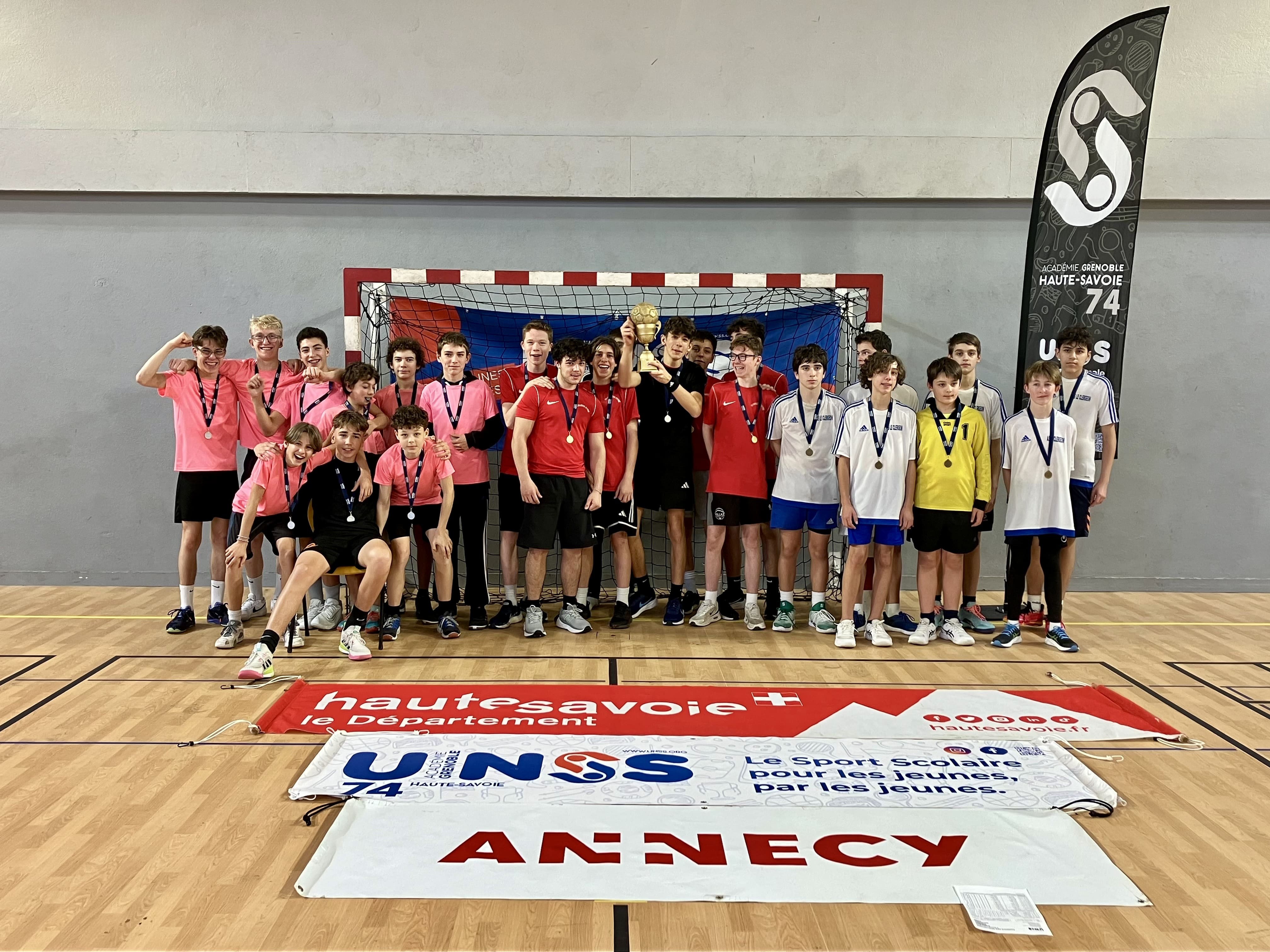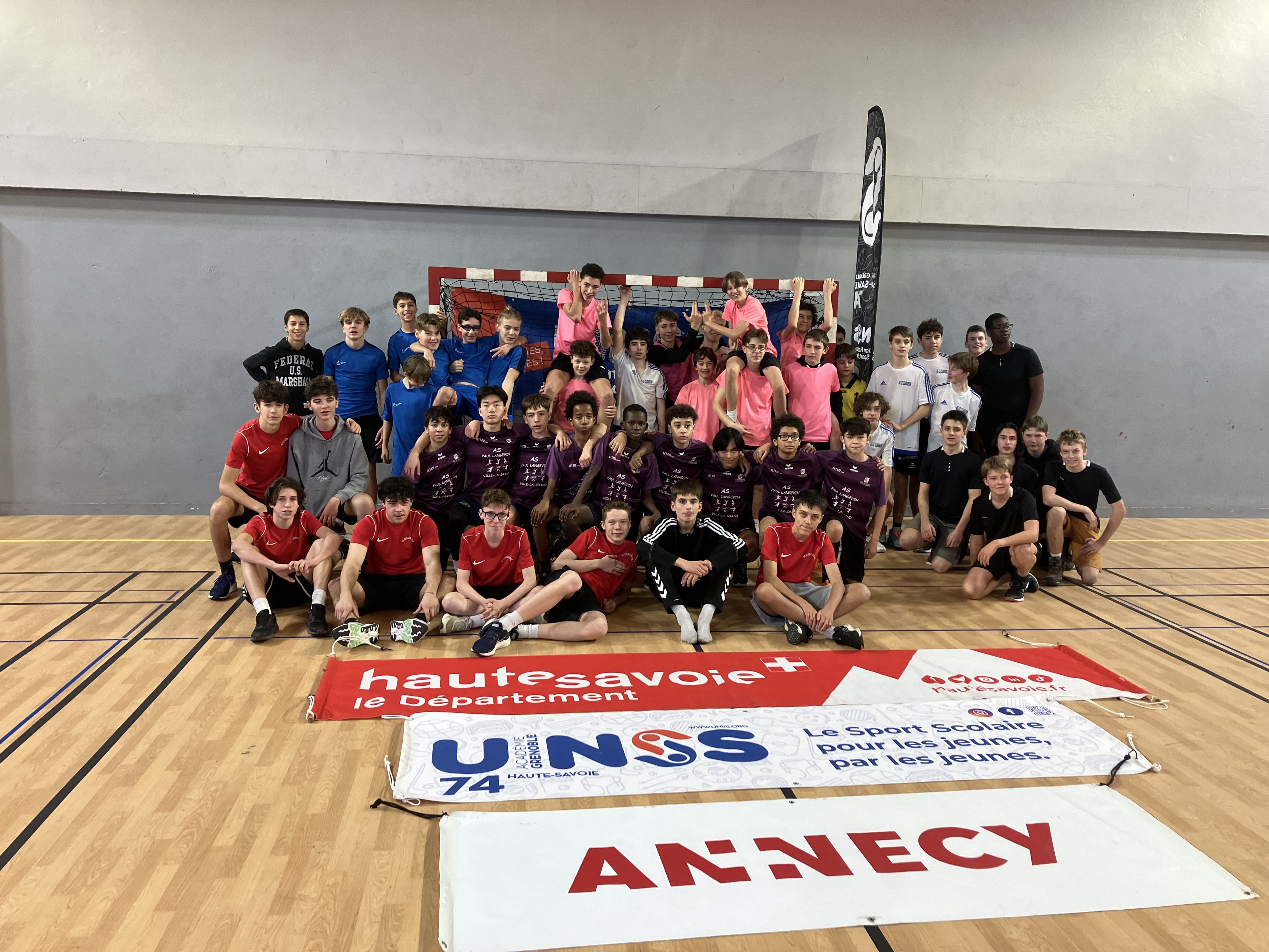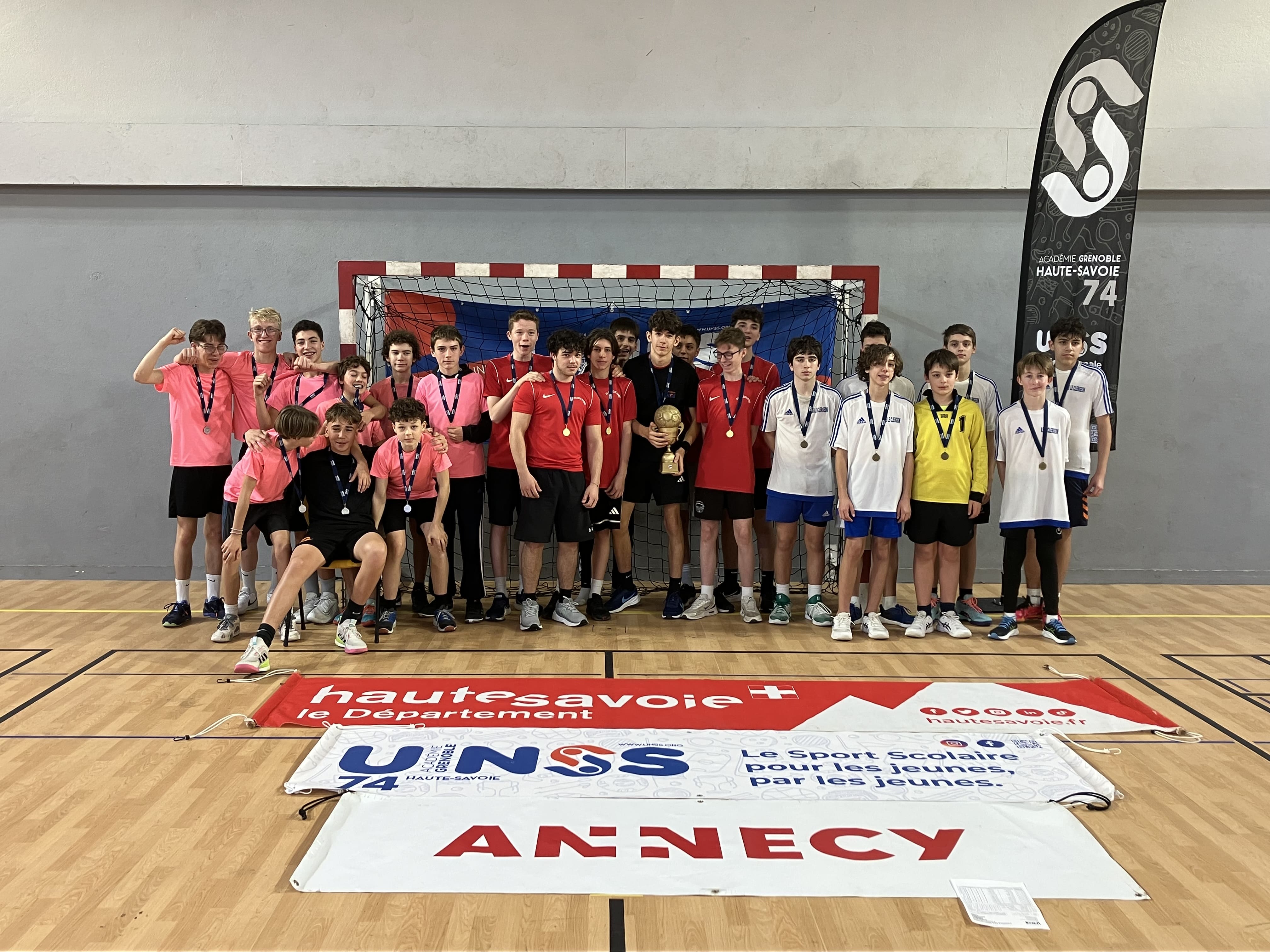 Aujourd’hui l équipe minime de handball a réussi l’exploit de devenir une nouvelle fois championne départementale de handball à domicile. Alors qu ils étaient en 5eme, cette même équipe était devenue championne départementale en 2023. Ils reprennent leur titre après une saison ratée l an passé mais cette fois dans la catégorie minime. Ils se qualifient ainsi pour le championnat académique le 11 mars en Savoie. L’objectif fixé par l’entraîneur est déjà rempli mais ils peuvent tout de même rêver d’une qualification pour les inter académiques, dernier grande marche avant les championnats de France.